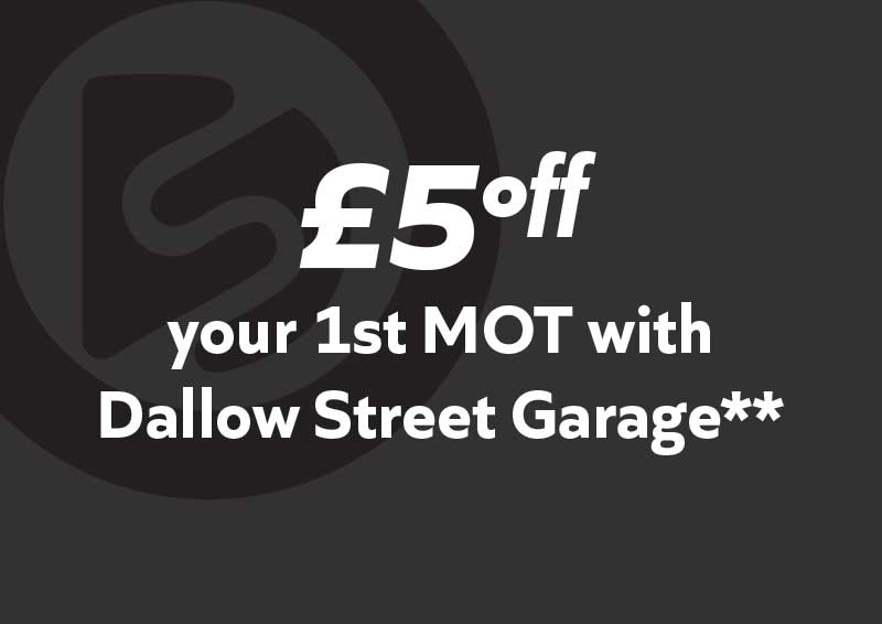 Terms and conditions for both the MOT and the Discount offer. ** New customers only. One use offer only not to be used more than once. On a full service only the 10% is to a maximum value of maximum costs of £250 only for example: Service fees @£250.00 resulting in a £25 off = 10% maximum discount. Ex VAT. MOT offer is valid for one time only, not to be repeated offer. New customers only. 1st MOT only at Dallow Street Garage. Cannot be exchanged for cash and is only valid at the discretion of the Management. Booking is essential. £5.00 will be deducted on payment of MOT completion or on booking payment.